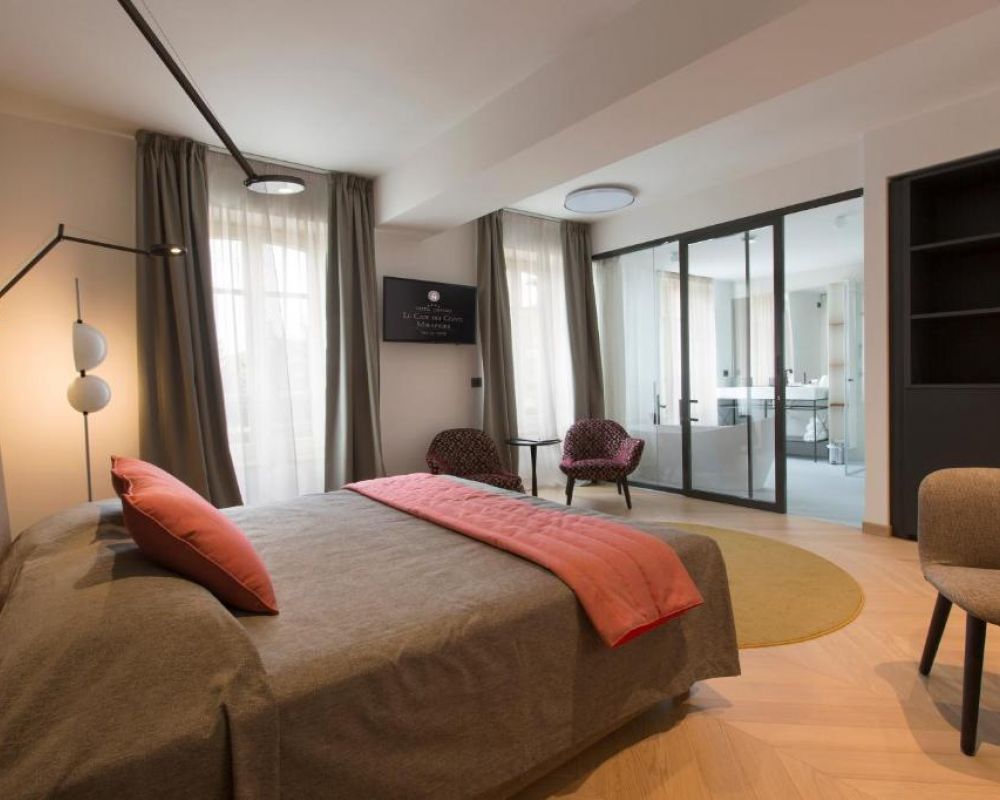 Hotel Le Case dei Conti Mirafiore features 14 cozy and elegant rooms, designed to provide maximum comfort and an unforgettable experience. The rooms are divided into three categories: standard, superior terrace, and deluxe. Each space is furnished with designer pieces by Poliform, exquisite Rubelli fabrics, Artemide lighting, and Gessi bathrooms, showcasing the excellence of Italian design. The refined style and attention to detail create a warm and sophisticated atmosphere, perfect for a relaxing stay in the heart of the Langhe.