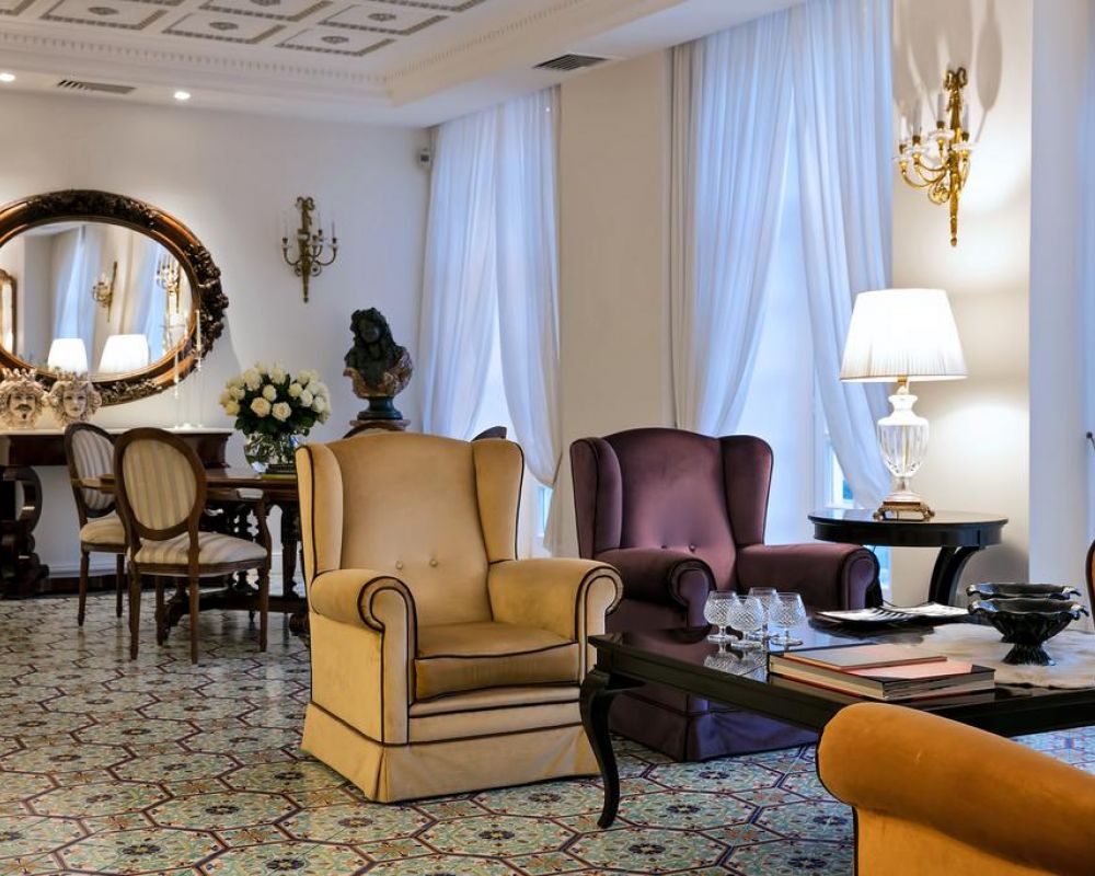 The Hotel 49 rooms stylishly furnished in classical and contemporary design pamper visitors with comfort, refinement and luxury. The De Luxe double rooms overlooking the quiet, centuries-old beautiful park have white walls and wood panelling, floors and bathrooms tiled in hand-painted “Vietri” ceramics, and all the best high-tech facilities
