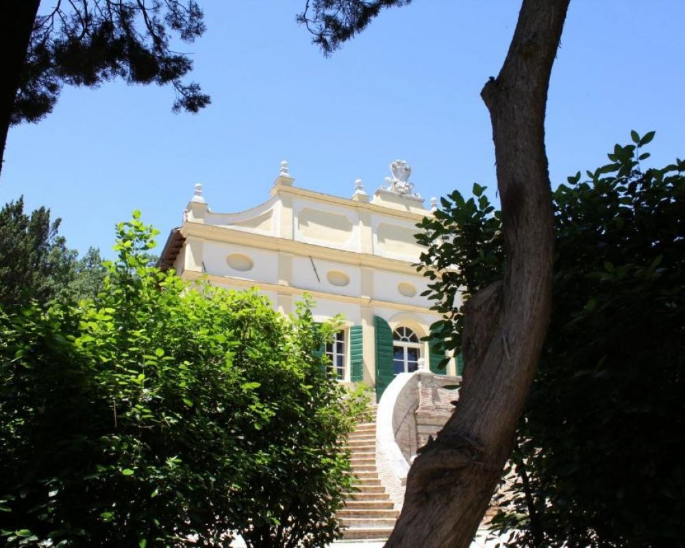 Going up from Rosciano towards the Camaldolese hermitage of Monte Giove, after a few hundred meters on the right, a gate guards the access to a long and steep avenue that leads to Villa Rinalducci, one of the most famous and splendid noble residences in the Fano district . Located on a large plateau, bordered by thick vegetation, the rectangular-plan dwelling has a façade embellished by a singular pincer staircase from the top of which you can look out over the valley of the Metauro river and towards the Adriatic Sea and from which you enter the noble floor.