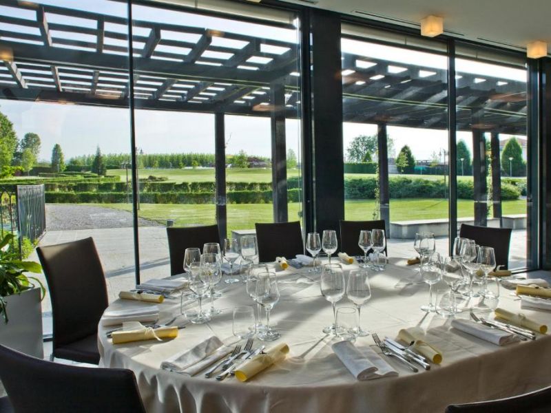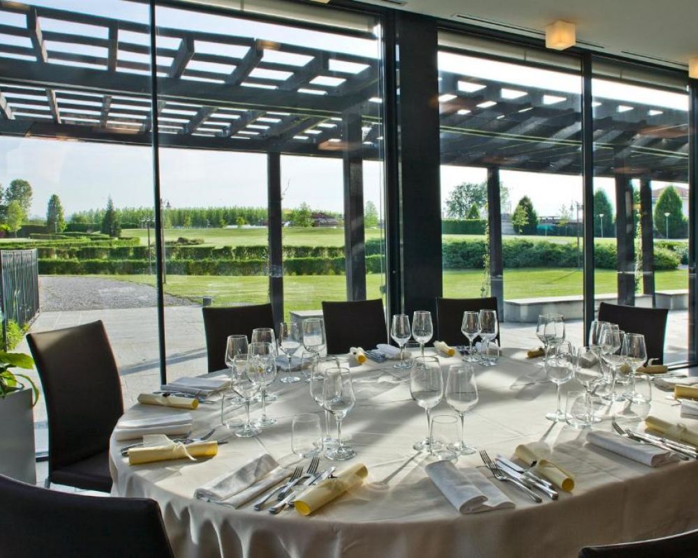 Un’esperienza gastronomica che unisce eleganza e tradizione, in un ambiente con ampie vetrate affacciate sul parco.