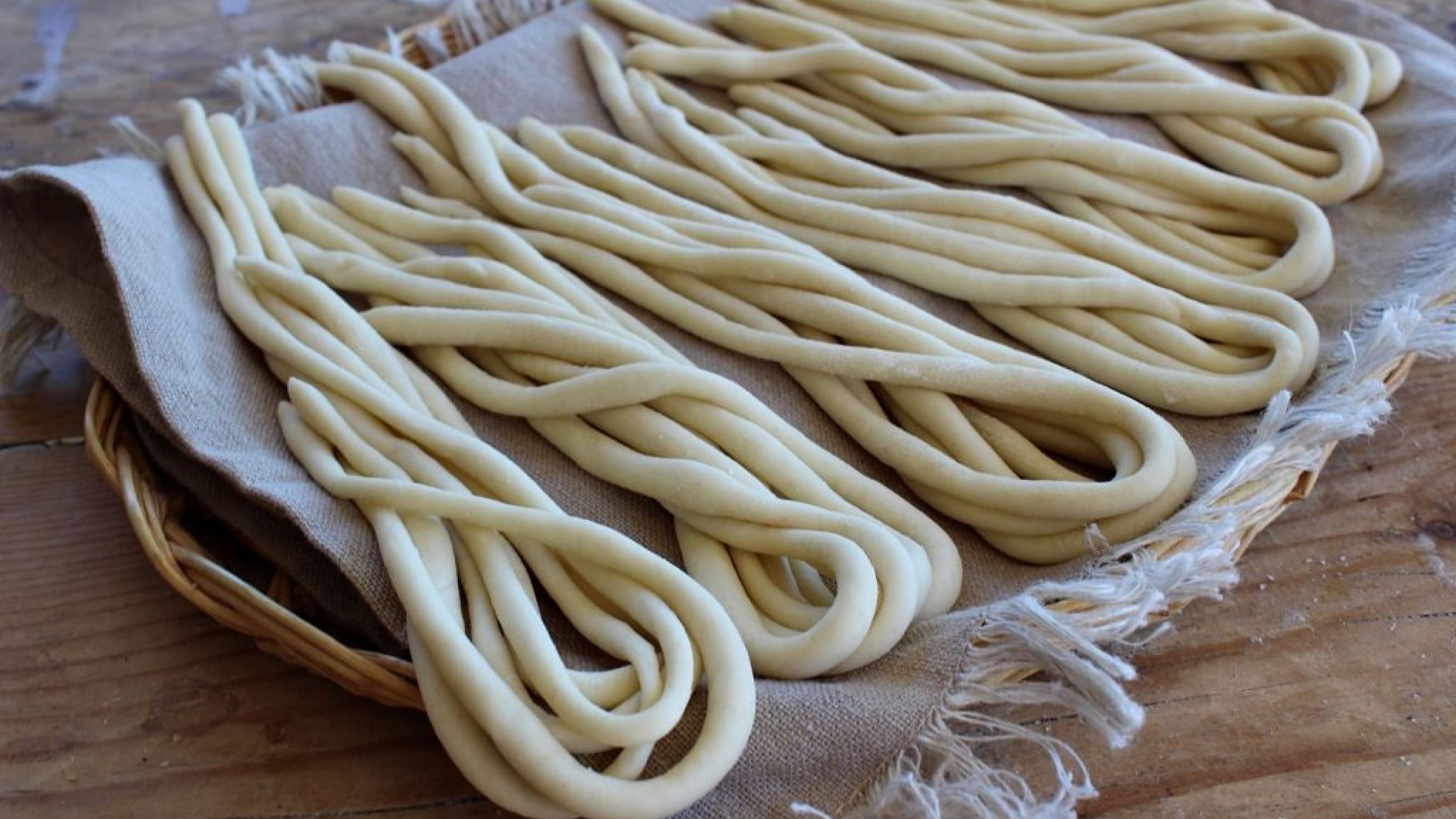Laboratorio di pasta fatta a mano (molitura, impasto, stenditura e taglio).