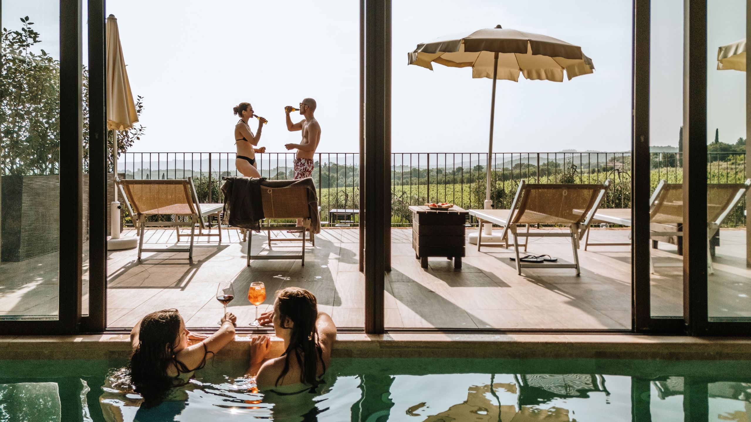 Goditi il sole e il paesaggio toscano con accesso alle nostre piscine esterne, e concediti attimi di totale relax all’interno della nostra “Isola del Benessere”, un luogo esclusivo dove mente e corpo trovano armonia. Continua il tuo viaggio sensoriale con un'ora dedicata solo a te nella nostra “Grotta”, un'oasi di pace progettata per il tuo relax profondo.