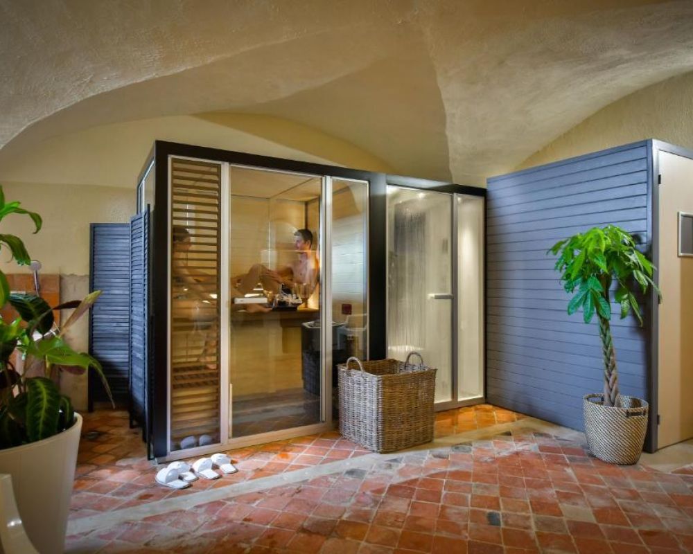 Scopri il nostro nuovo spazio benessere, con jacuzzi, sauna e bagno turco. Accessibile direttamente dalla tua camera in accappatoio e ciabatte (forniti per la tua comodità), questo tranquillo spazio si trova al piano terra dell'edificio principale, sotto suggestive volte in pietra. La nostra piscina esterna riscaldata è aperta da maggio a ottobre. Rilassati su una sdraio e goditi il sole accanto alla piscina o sui prati circostanti. Inoltre, offriamo un piccolo studio fitness per aiutarti a mantenere la tua routine di esercizi anche quando sei lontano da casa.