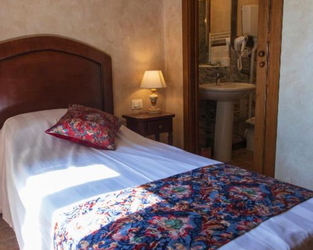 Le camere matrimoniali, singole e quadruple, ideali per le famiglie sono state ricavate nei locali della casa padronale e presentano, oltre ai pavimenti in cotto fatto a mano, lampadari in legno scolpito in foglia d’oro, solai con pianelle e travi a vista e mobili di manifattura italiana in noce.
