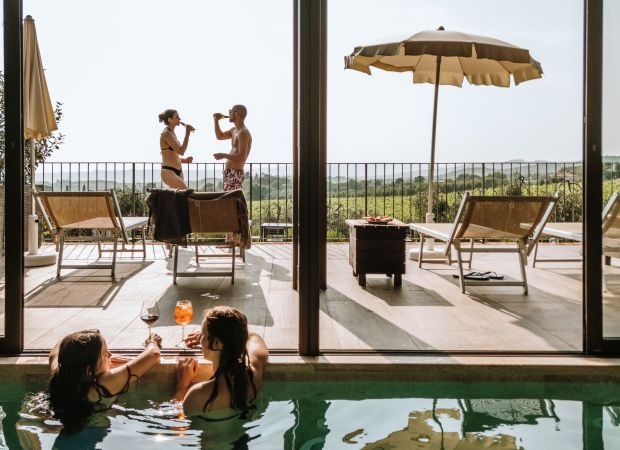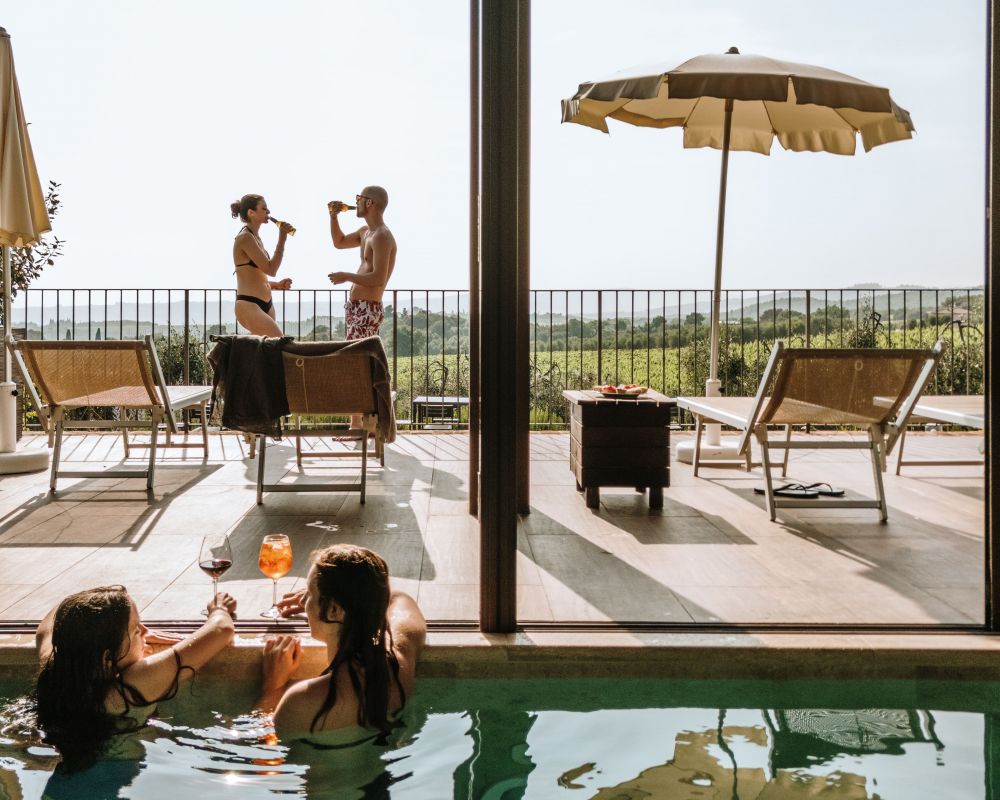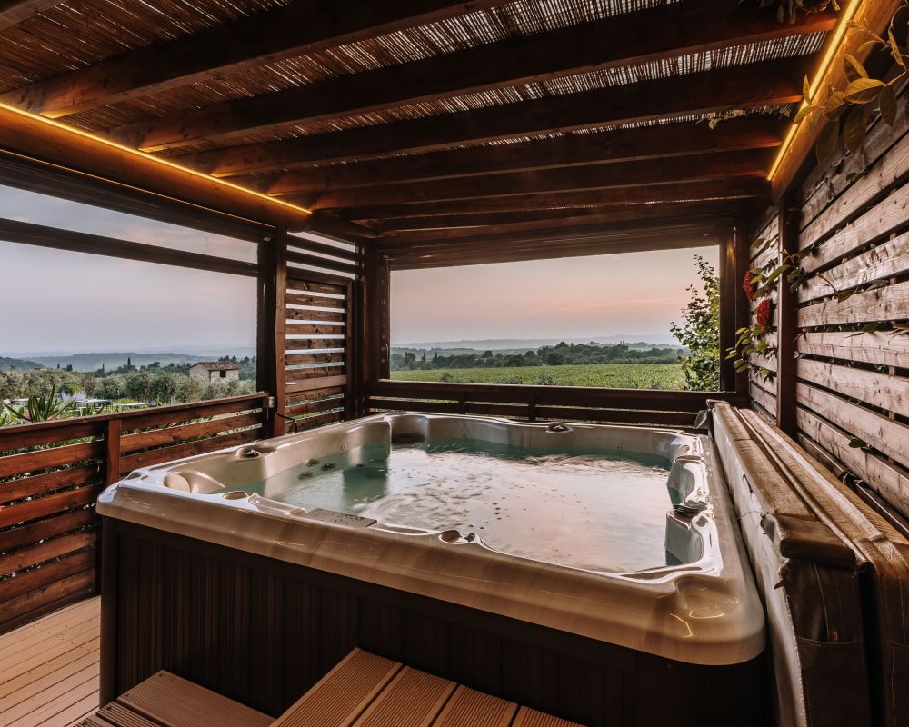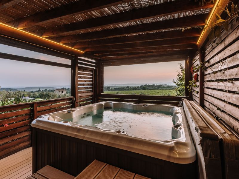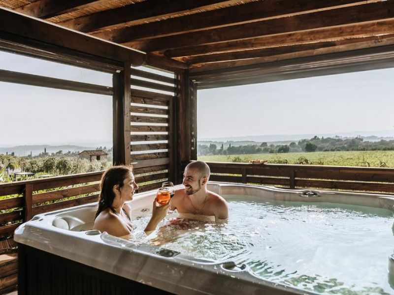 AREE BENESSERE: Per chi è alla ricerca di tranquillità nel verde della campagna senese, a soli 20 km da Siena. L'Area Relax/SPA comprende una piscina panoramica a sfioro, una Jacuzzi idromassaggio e una terrazza solarium con vista panoramica. L'Isola del Benessere, invece, comprende una Jacuzzi idromassaggio esterna nei pressi dell'uliveta.