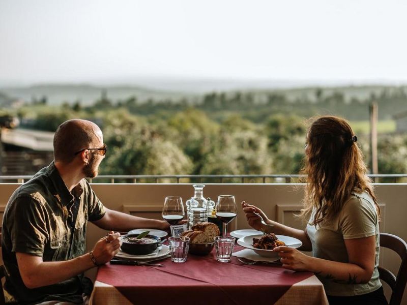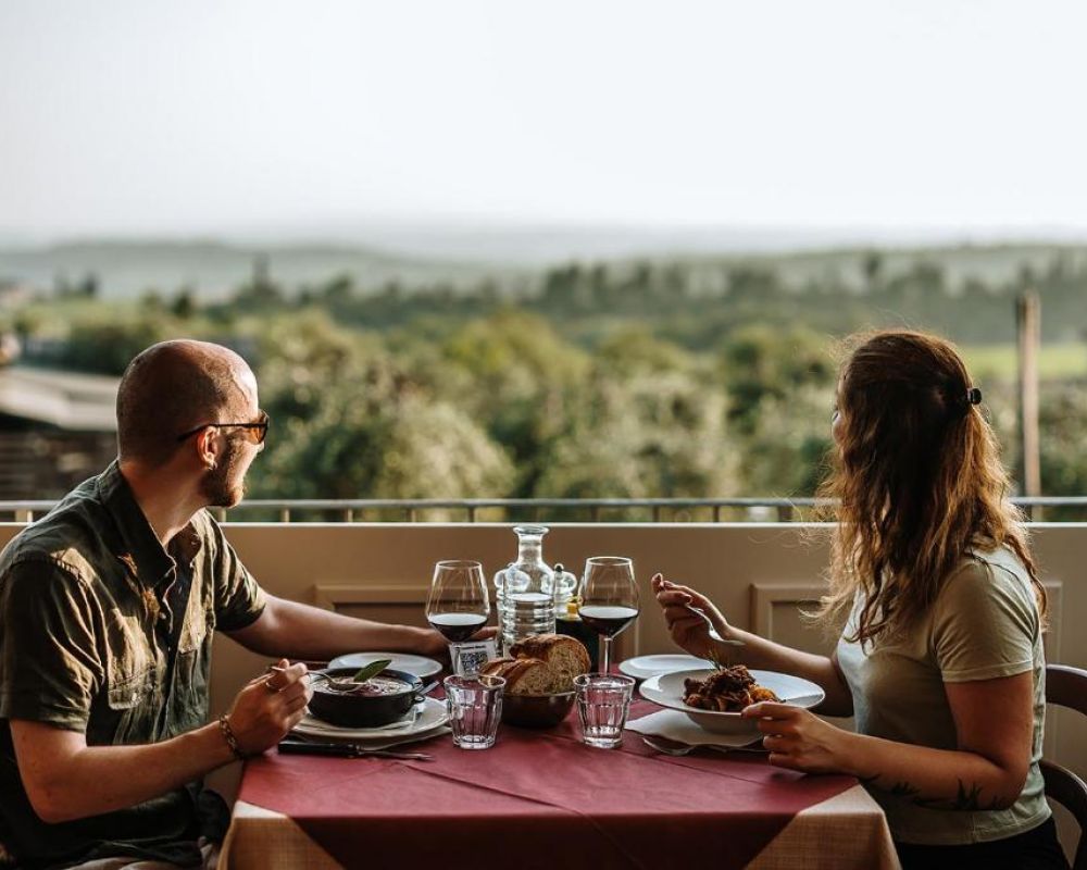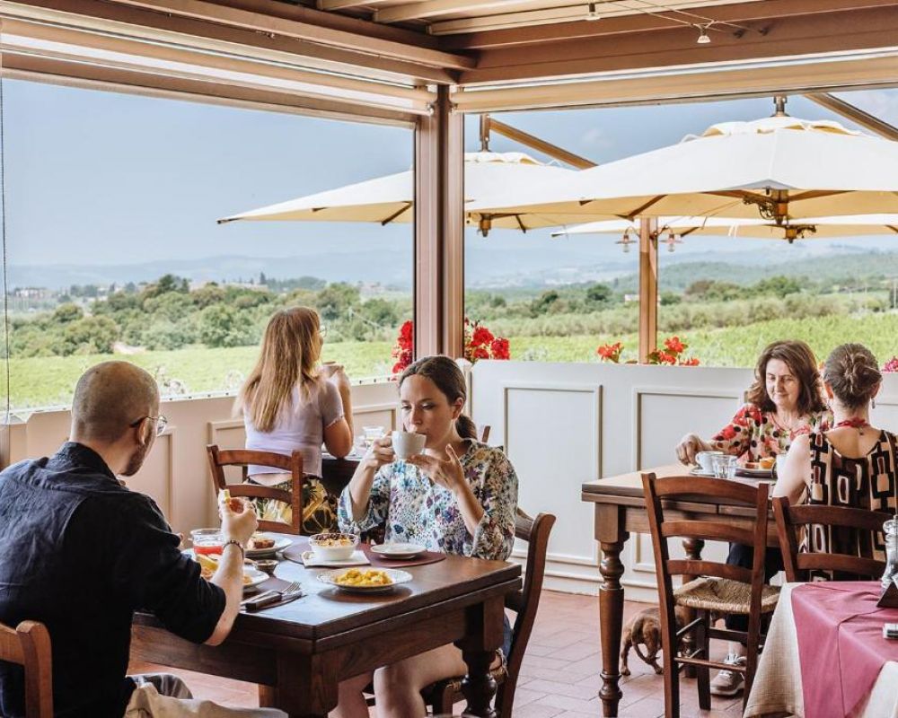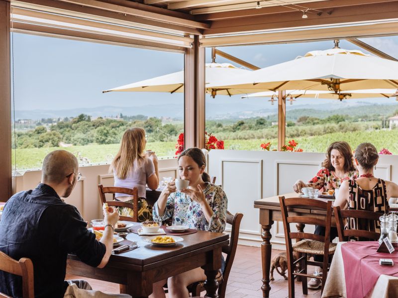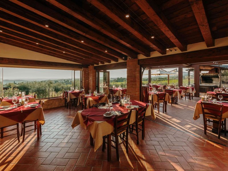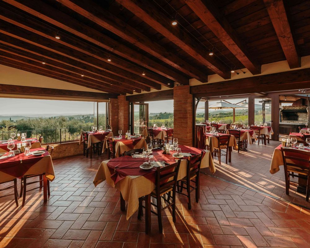 IL RISTORANTE ENOTECA: A Villa di Sotto puoi trovare un Ristorante di cucina tipica toscana con un'ampia terrazza panoramica sul Chianti e su Siena aperto tutti i giorni con orario continuato dalle ore 12:30 fino a sera. Al suo interno è presente anche un'Enoteca ben fornita dove puoi confrontare un'ampia selezione di vini locali e non, oltre a poterli degustare ed acquistare.