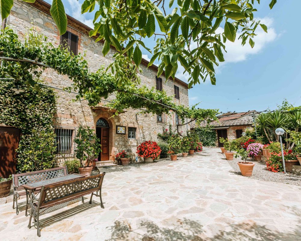 Immergetevi nel magnifico panorama del Chianti Classico a 20 Km da Siena, in una splendida casa colonica ottocentesca circondata da borghi e castelli, vigneti e uliveti.