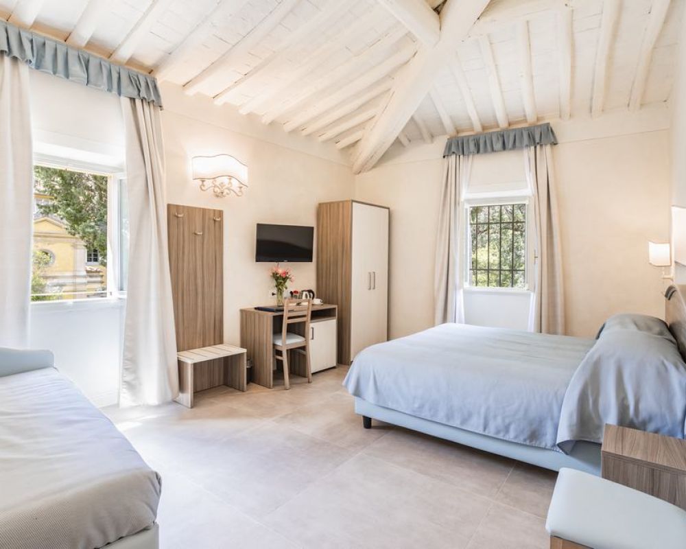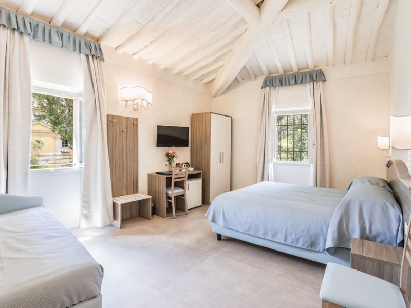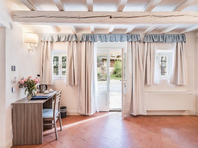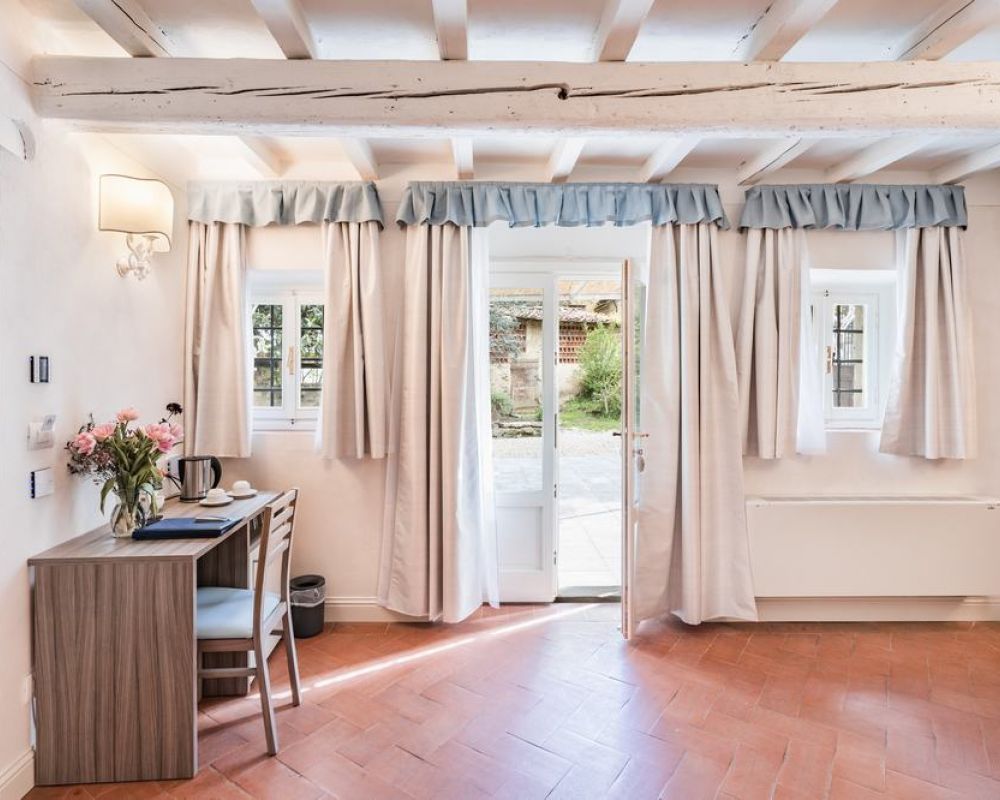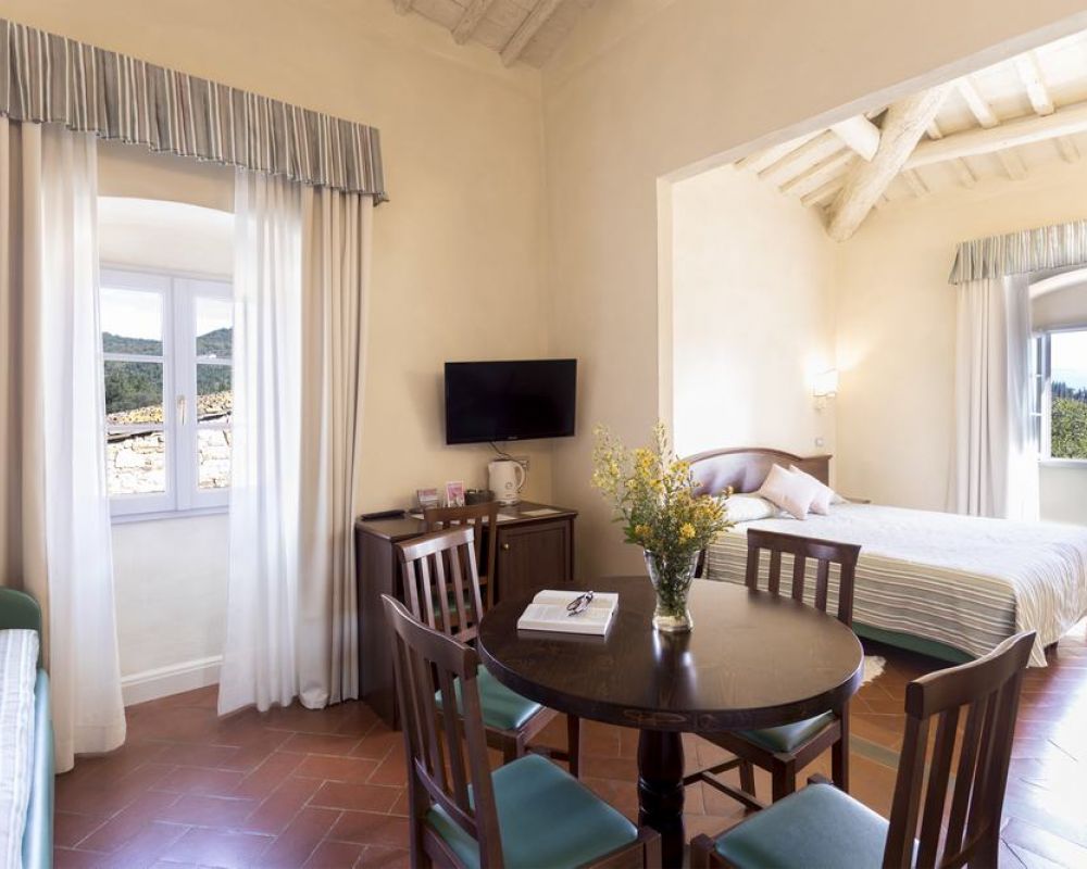 Le Camere della Fattoria sono situate nello storico Borgo di Maiano e nei suoi immediati dintorni. Ciascuna è una raffinata sintesi di antico e moderno, conservando il fascino del passato con tutti i comfort contemporanei: climatizzatore, piccolo frigo, TV e Wi-Fi. Dalle accoglienti Comfort alle raffinate Junior, fino alla sofisticata Suite, ogni camera è finemente arredata e include una speciale colazione a base di prodotti a km zero e l'uso dell'esclusiva piscina panoramica.