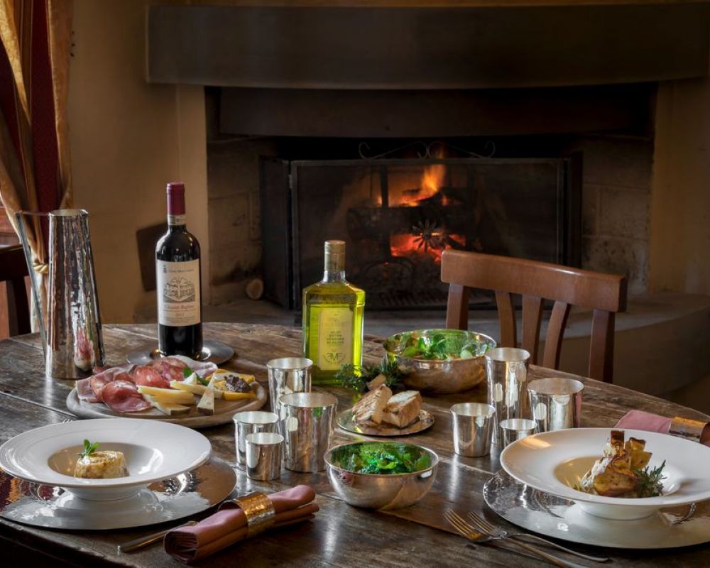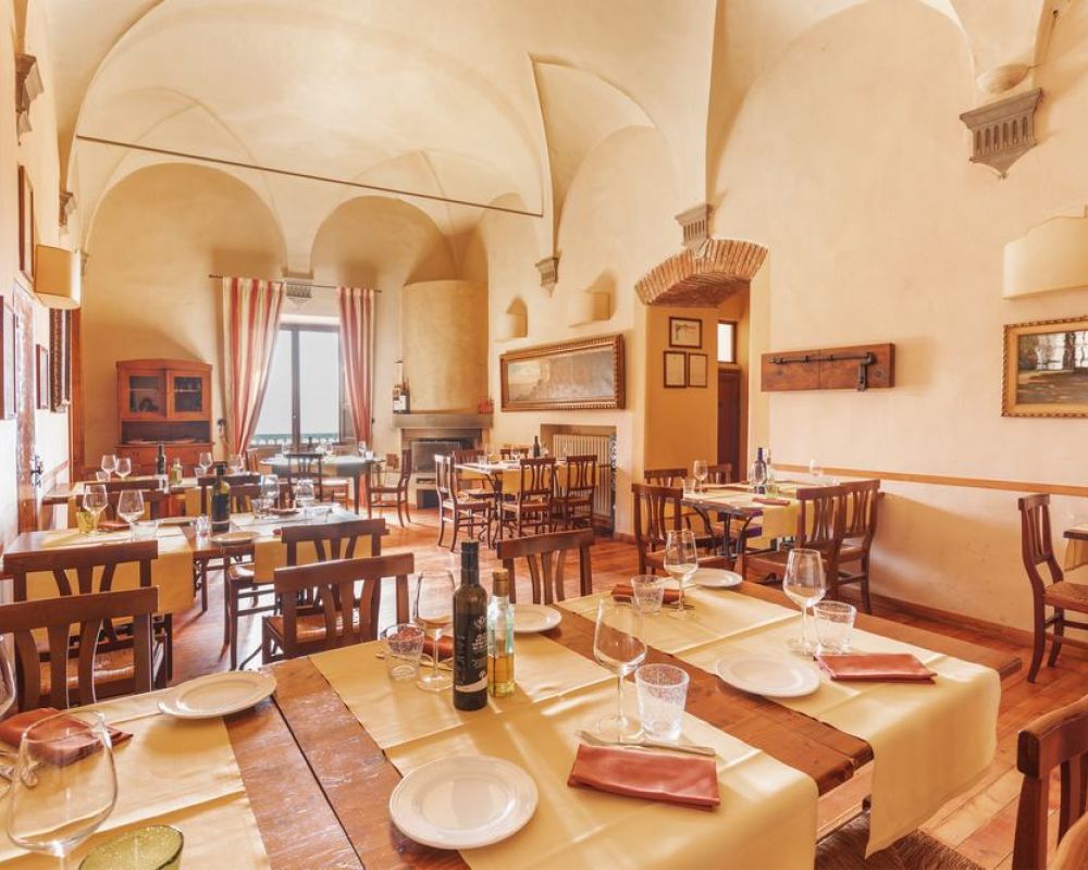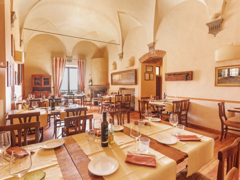 Il menu cambia regolarmente, avvalendosi dei prodotti a km zero della Fattoria: dalle carni ai prodotti dell'orto, dai salumi nostrani all'olio biologico degli ulivi che digradano lungo la collina. La cornice è altrettanto appagante, con eleganti sale interne e una magnifica vista sull’oliveta che accompagna i piaceri del palato.