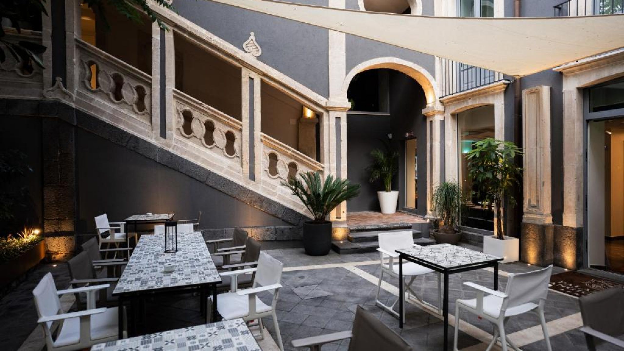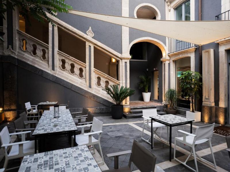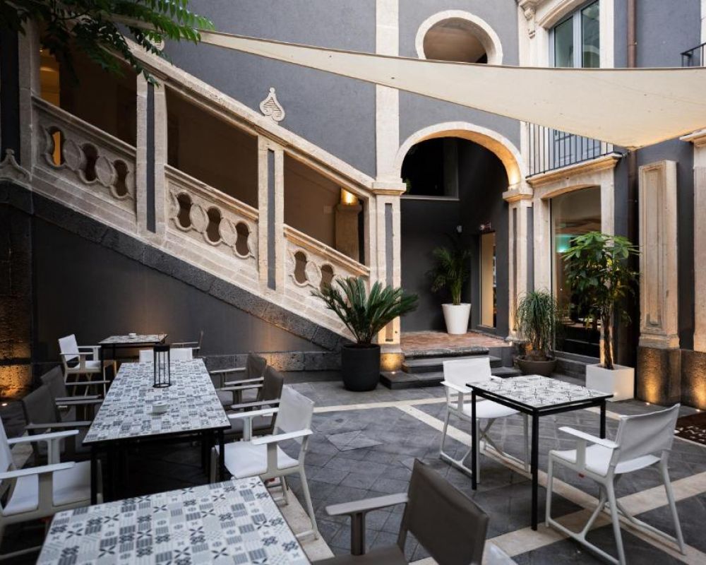 Nelle calde serate siciliane, l'esperienza di fine dining si sposta nel giardino privato, dove l'armonia estetica dei piatti incontra la regale architettura della scalinata del Vaccarini, o sul suggestivo Rooftop bar. Qui, tra i colori del tramonto e una vista panoramica sulla città, è possibile godersi un aperitivo esclusivo o un momento di relax nella Jacuzzi esterna, immersi in un'atmosfera che richiama la nobile ospitalità siciliana in chiave contemporanea.