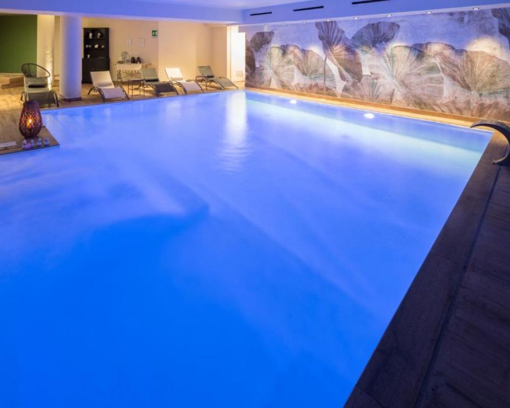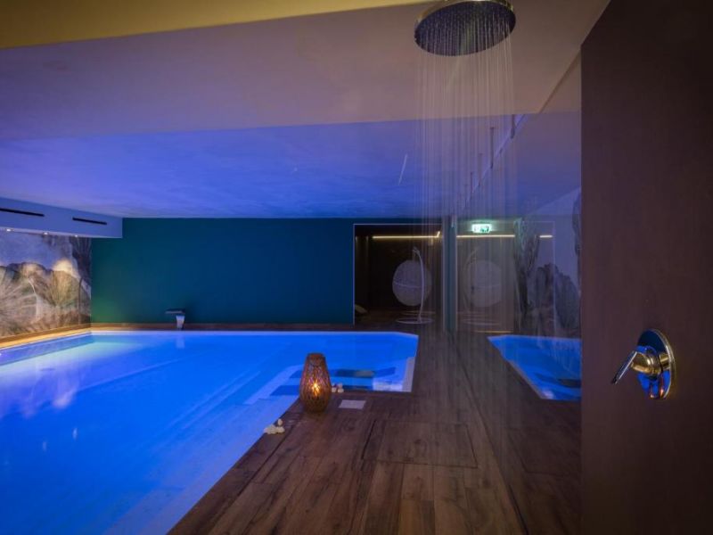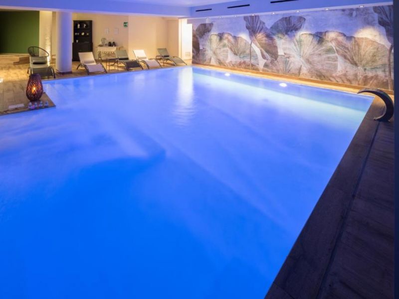 Piscina interna riscaldata con idromassaggio, lama cervicale e nuoto controcorrente.