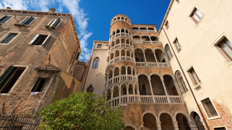 Palazzo Contarini del Bovolo è un edificio tardo gotico di Venezia, situato nel sestiere di San Marco, vicino a Campo Manin, affacciato sul Rio di San Luca. Ciò che rende questo edificio così speciale è una sorprendente scalinata alta 26 metri, la “Scala Contarini del Bovolo”. La scala conduce ad un porticato, dal quale si gode una magnifica vista sui tetti della città. La costruzione originaria dell'edificio dovrebbe risalire al XIV secolo, ma l'aggiunta della scalinata avvenne invece alla fine del XV secolo. È possibile visitare questo luogo incantevole e salire la scalinata pagando un biglietto da 8 euro (6 euro per i bambini).